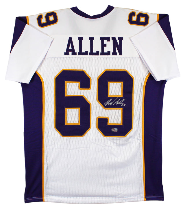 Own a piece of Minnesota Vikings history with this Jared Allen Autographed White Pro-Style Jersey. Personally signed by the legendary defensive end, this highly collectible item is 100% authentic and certified by Beckett Authentication Services (BAS). This signature was obtained through BAS’s Witnessed Protection Program, meaning a Beckett representative was present at the signing to guarantee its authenticity.