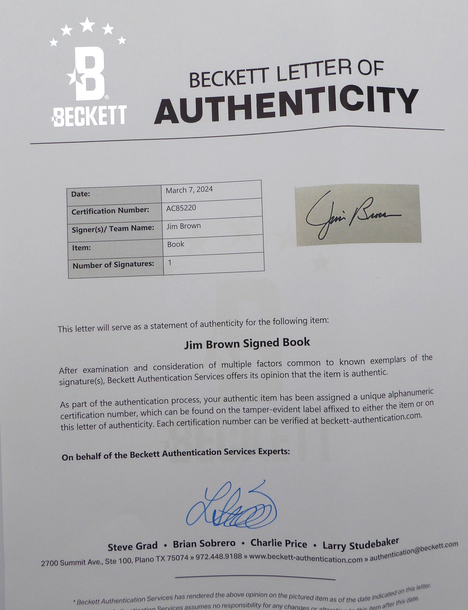 Jim Brown Autographed Book Cleveland Browns Beckett BAS #AC85220 is backordered and will ship as soon as it is back in stock.