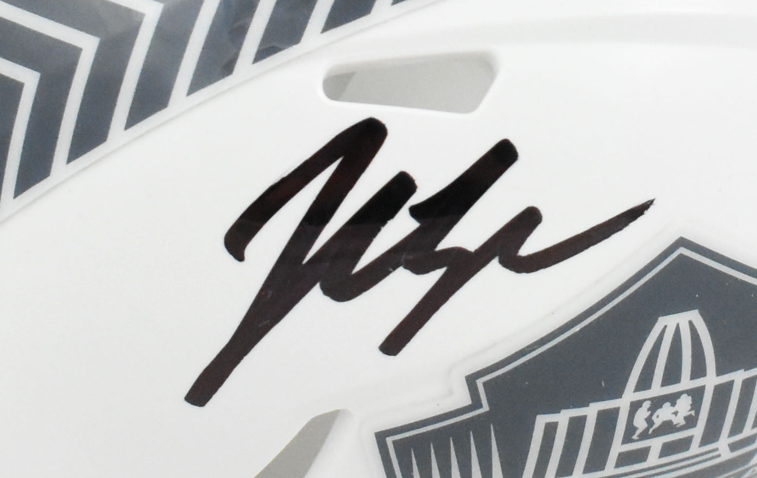 Celebrate a legendary NFL career with this hand-signed John Lynch Tampa Bay Buccaneers Hall of Fame Salute to Service Riddell Speed Mini Helmet. This collectible piece honors Lynch’s impactful legacy as a hard-hitting safety and his 2021 induction into the Pro Football Hall of Fame. A must-have for loyal Bucs fans and serious memorabilia collectors alike, this mini helmet is an ideal display piece that captures the grit and greatness of a defensive icon.