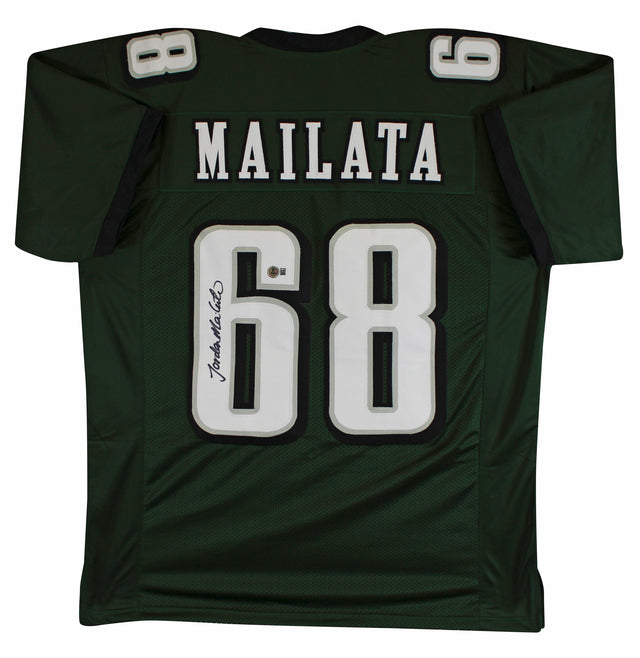 Own a piece of Philadelphia Eagles history with this Jordan Mailata Autographed Green Pro Style Jersey. Personally signed by the Eagles' standout offensive tackle, this collector’s item is a must-have for die-hard fans and serious sports memorabilia collectors. As a key member of the Philadelphia Eagles since 2018, Jordan Mailata’s journey from rugby league player in Australia to NFL starter has inspired fans around the world. Now, you can commemorate his incredible story with this authenticated specialty jersey. This custom-stitched, non-branded jersey is a bold addition to any Eagles collection, perfect for display in your fan cave, office, or game room. Each signature was witnessed in person by a Beckett Authentication Services (BAS) representative, offering ultimate authenticity through the BAS Witnessed Protection Program.