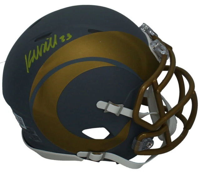 Kyren Williams Autographed (in Yellow) Los Angeles Rams Slate Speed Mini Helmet Beckett Witnessed