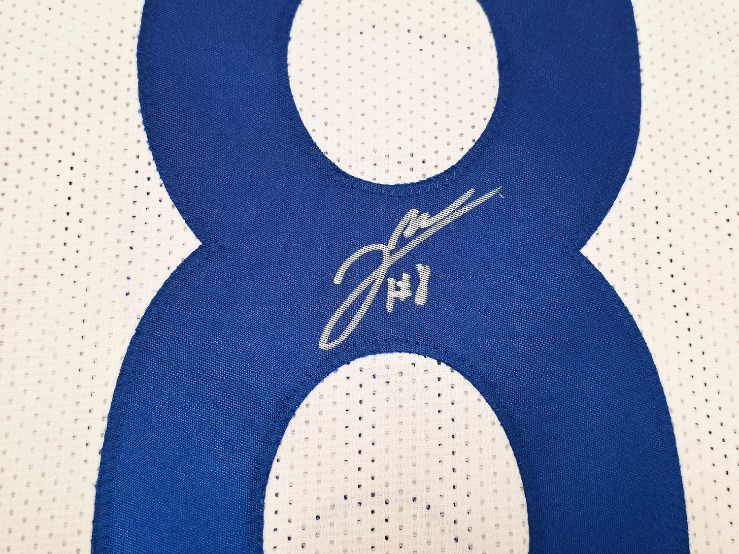 - Custom White Jersey: This is a high-quality custom jersey with no official name brand, designed for display and memorabilia purposes.