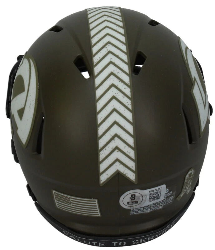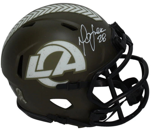 Marshall Faulk Autographed Rams 2022 Salute to Service Speed Mini Helmet Beckett Witnessed