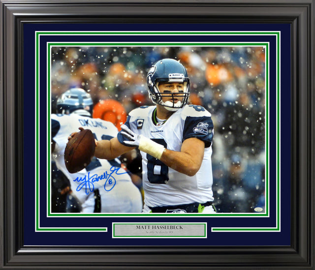 Own a stunning piece of Seattle Seahawks history with this Framed 16x20 Photo signed by legendary quarterback Matt Hasselbeck. A key figure in the Seahawks' rise to prominence, Hasselbeck led the team to their first-ever Super Bowl appearance in the 2005 season, cementing his legacy as one of Seattle’s greatest signal-callers.
