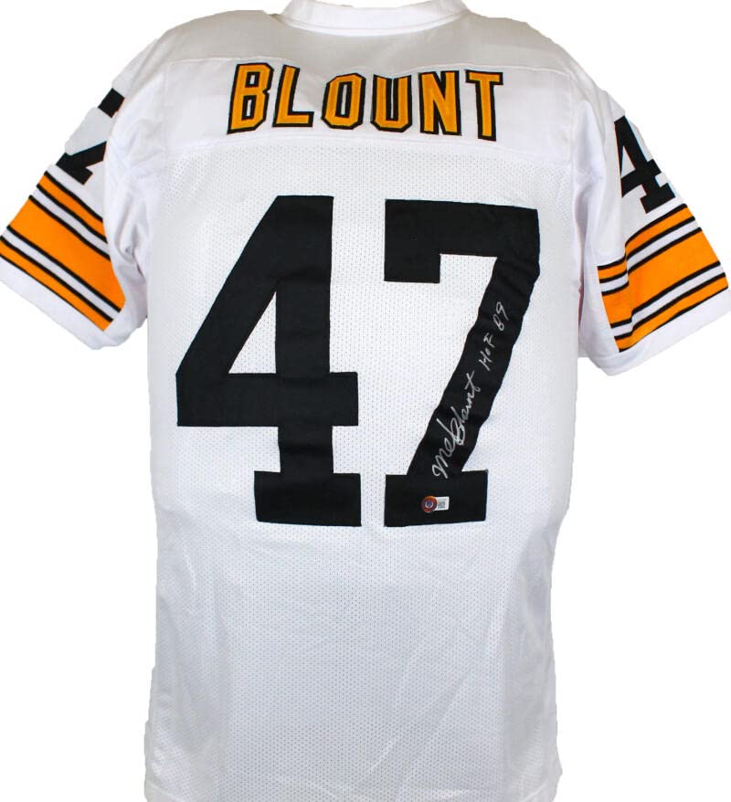 Mel Blount Autographed White Pro Style Jersey w/HOF-Beckett W Hologram *Silver is backordered and will ship as soon as it is back in stock.