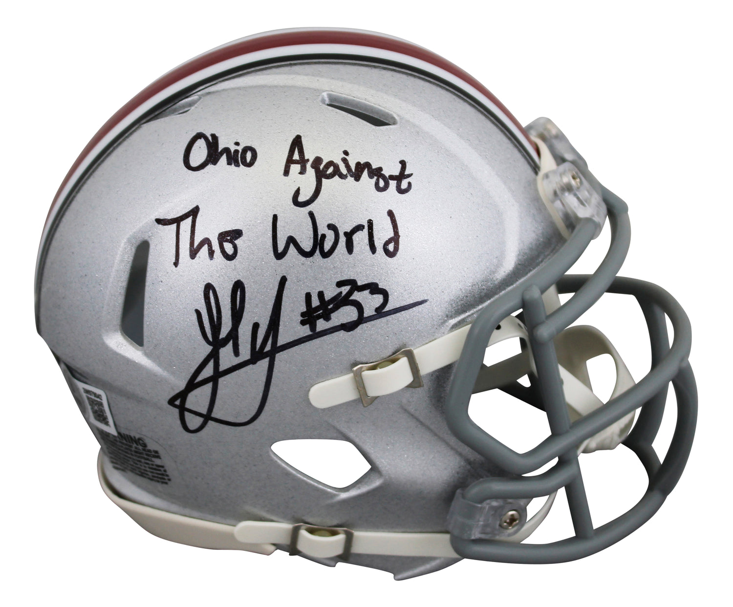 OSU Jack Sawyer "Ohio Against the World" Signed Speed Mini Helmet BAS Witnessed