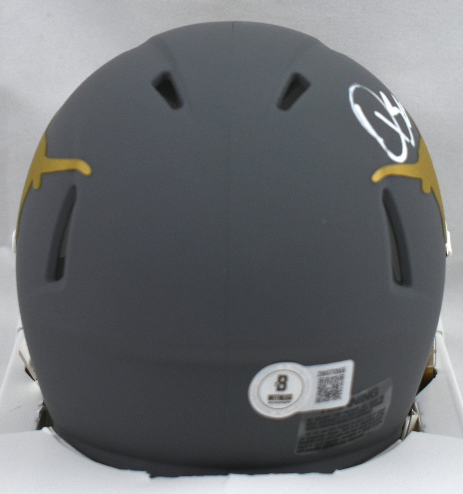 Quinn Ewers Autographed Texas Longhorns Slate Speed Mini Helmet - Beckett W Holo