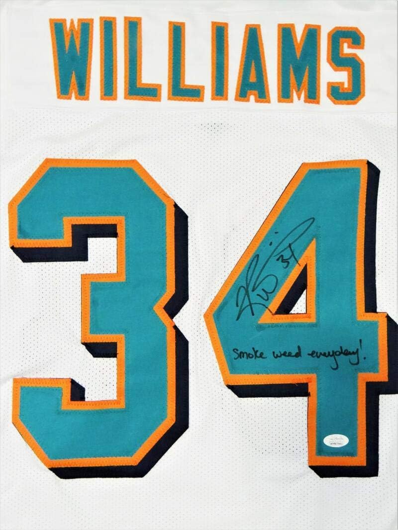 Own a piece of football history with this hand-signed Ricky Williams custom jersey—a must-have for collectors and fans alike! This authentic-style jersey features stitched letters and numbers and is perfect for display in any sports memorabilia collection. Please note: This is not an NFL-branded jersey—it has no tags, logos, or emblems, making it a unique collector's piece.