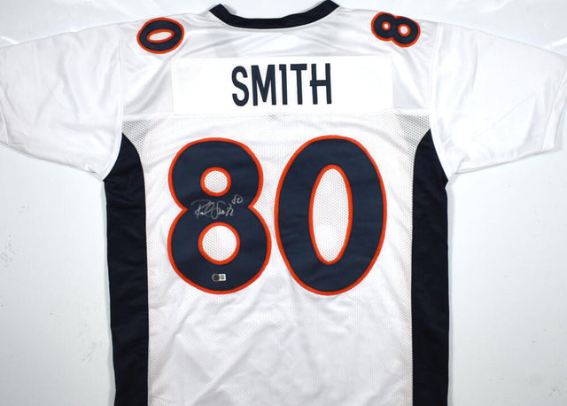 Own a piece of football history with this Rod Smith Autographed Custom Jersey—a must-have for Denver Broncos fans and collectors alike! This authentic style, non-branded jersey features stitched letters and numbers, making it a high-quality display item for any memorabilia collection.