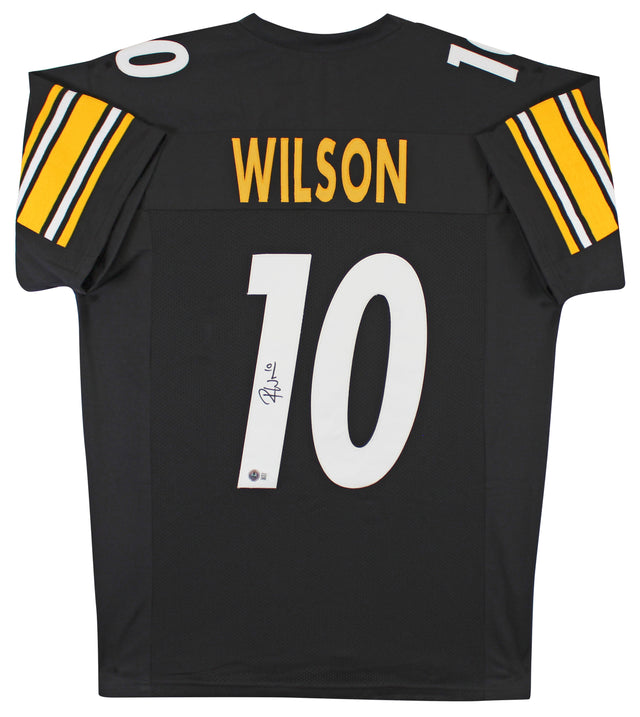 Own a piece of Pittsburgh Steelers history with this Autographed Black Pro Style Jersey, personally signed by rising star Roman Wilson. Whether you're a devoted Steelers fan or a collector of authentic sports memorabilia, this jersey makes an outstanding display piece. Verified by Beckett Authentication Services (BAS), this item is 100% authentic and part of the BAS Witnessed Protection Program, meaning a Beckett representative was present during the signing.