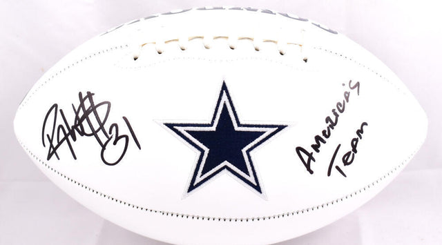 Own a piece of Dallas Cowboys history with this hand-signed Roy Williams autographed football. This Dallas Cowboys logo football is personally inscribed with "America's Team", making it a must-have for any true Cowboys fan or serious memorabilia collector.