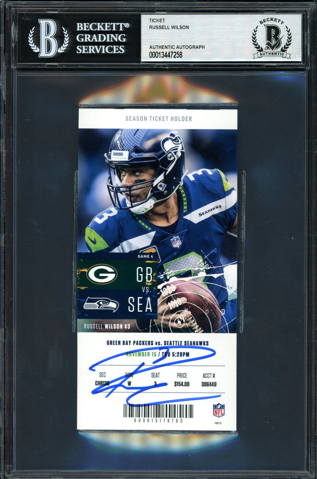 Russell Wilson Autographed 2018 3x6 Ticket Seattle Seahawks Vs. Packers 11-15-18 Beckett BAS #13447258