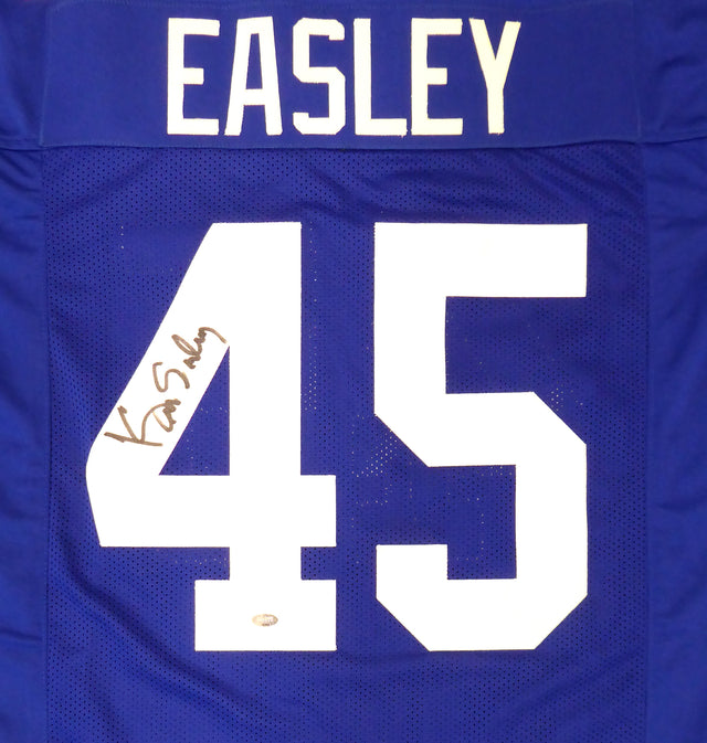 - This blue custom jersey has been hand-signed by Kenny Easley, adding significant collectible value.