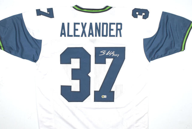 Shaun Alexander Autographed White Pro Style Jersey - Beckett W Hologram *Silver is backordered and will ship as soon as it is back in stock.