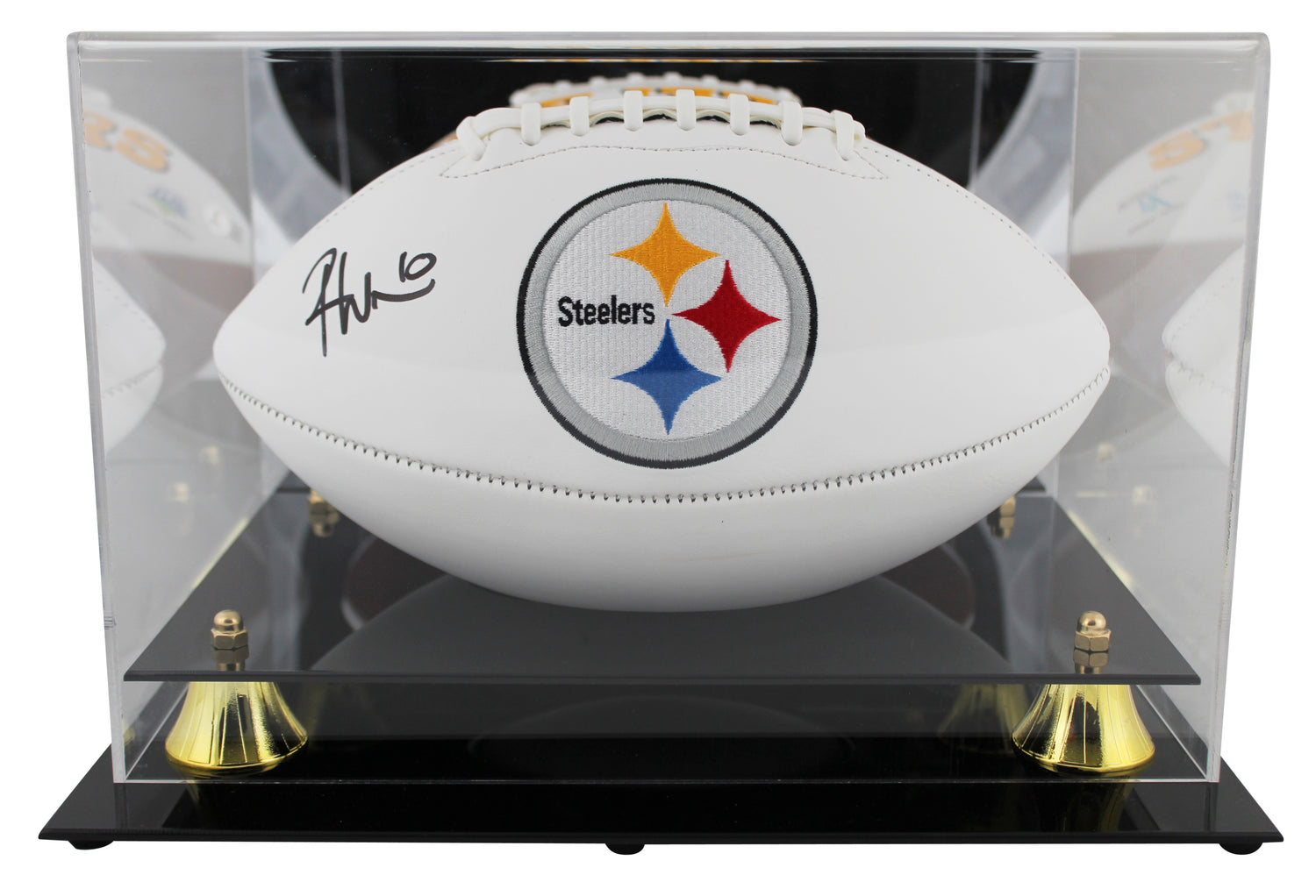 Steelers Roman Wilson Signed White Panel Logo Football W/ Case BAS Witnessed