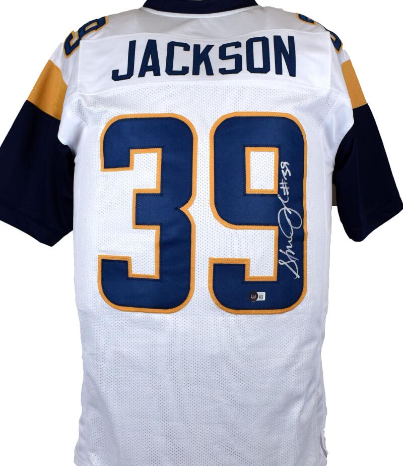 Elevate your sports memorabilia collection with this hand-signed Steven Jackson custom jersey —a must-have for fans of the legendary running back. This Authentic Style Jersey is custom-made (non-name brand) and features stitched letters and numbers, making it a fantastic display piece. While it is not an official NFL jersey, it offers the perfect way to showcase your appreciation for Steven Jackson’s incredible career.