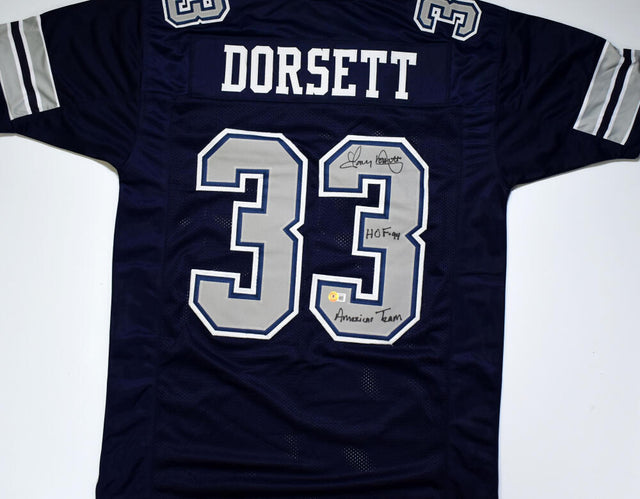 Own a piece of football history with this hand-signed Tony Dorsett custom jersey, perfect for Dallas Cowboys fans and memorabilia collectors. This authentic-style, non-branded jersey features stitched letters and numbers and includes a special inscription: "HOF, America's Team."