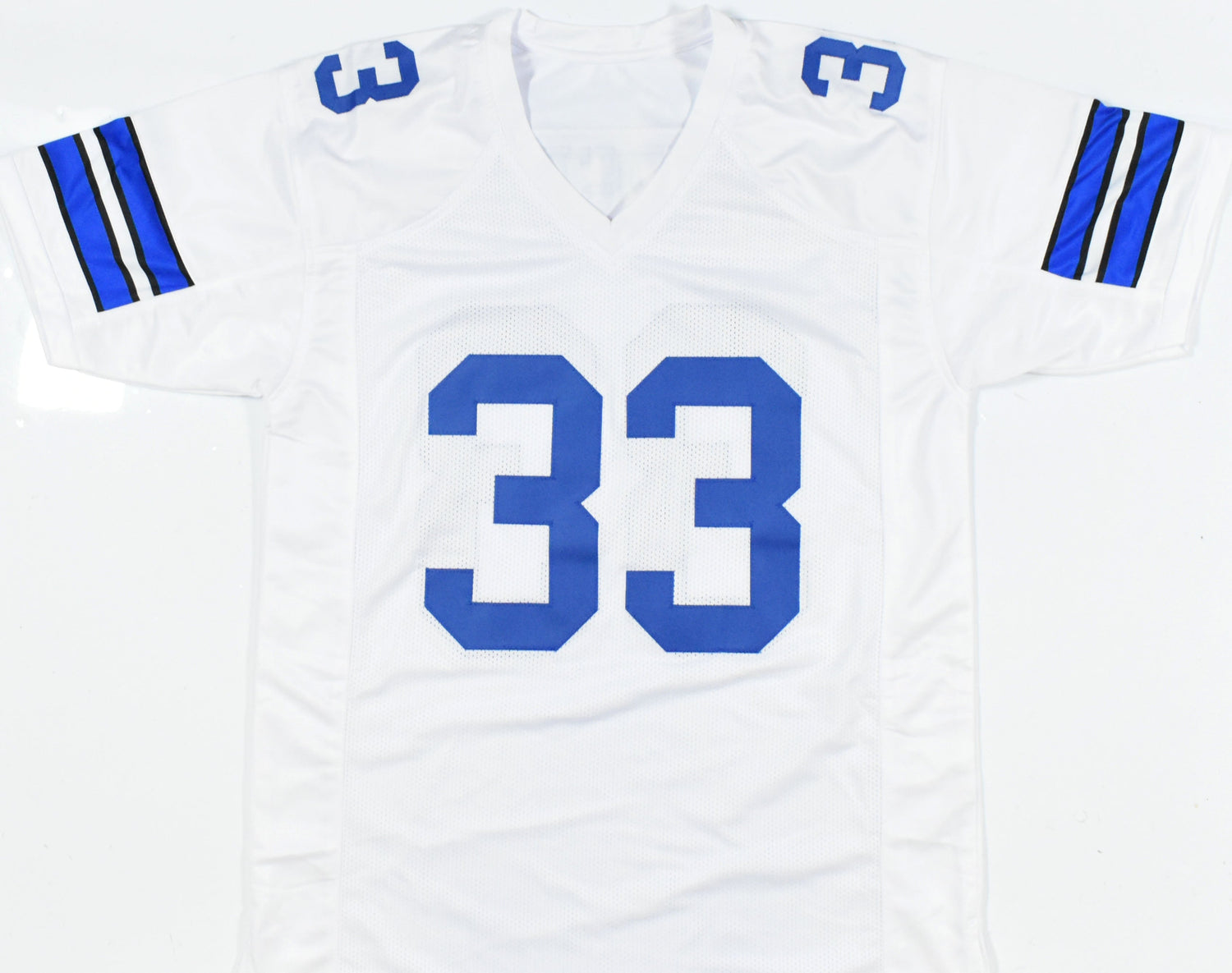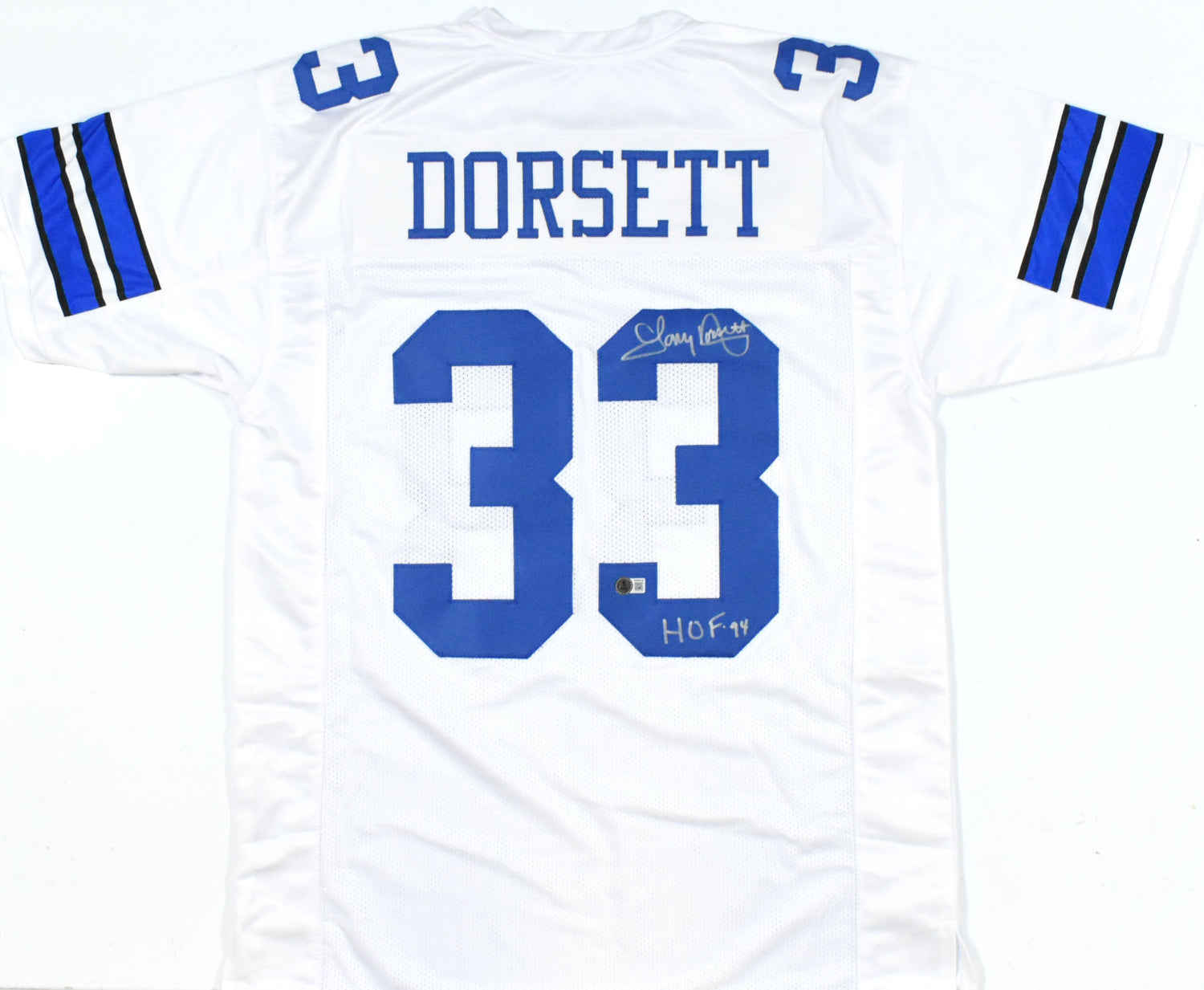 Own a piece of football history with this Tony Dorsett autographed Dallas Cowboys custom jersey. Perfect for collectors and Cowboys fans alike, this jersey celebrates the legacy of one of the NFL’s all-time great running backs. A key figure in the Dallas Cowboys' storied history, Tony Dorsett is best known for his explosive speed and memorable plays, including his legendary 99-yard touchdown run. Honored as a Pro Football Hall of Famer, Dorsett remains one of the most respected names in the sport. This collectible features Dorsett’s authentic signature along with a special “HOF” inscription, commemorating his 1994 induction into the Pro Football Hall of Fame. This is an ideal keepsake for any true fan or memorabilia investor looking to showcase a timeless icon of football greatness.