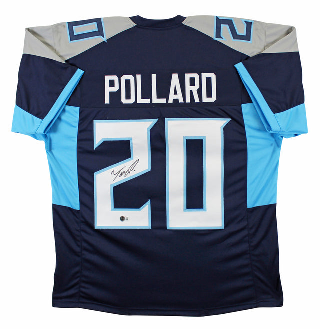 Own a piece of football history with this Autographed Navy Pro Style Jersey, personally signed by Tony Pollard of the Tennessee Titans. This high-quality, X-Large custom-stitched jersey is perfect for collectors and die-hard fans looking to showcase their Titans pride. Authenticated by Beckett Authentication Services (BAS), this signed jersey is guaranteed 100% authentic, making it a valuable addition to any sports memorabilia collection.