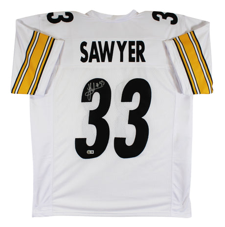 Steelers Jack Sawyer Signed Rawlings White Panel Logo Football W/ Case BAS Wit