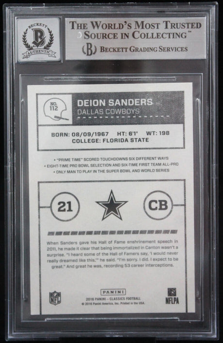 2016 Classics #112A Deion Sanders Dallas Cowboys BGS Autograph 10