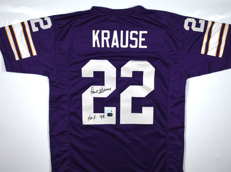 Paul Krause Autographed Purple Pro Style Jersey w/HOF- Beckett W Hologram *Black