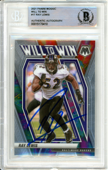 2021 Panini Mosaic Will to Win Mosaic #17 Ray Lewis Ravens BGS Autograph