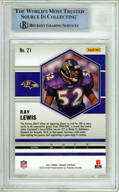 2021 Panini Mosaic #21 Ray Lewis Baltimore Ravens BGS Autograph