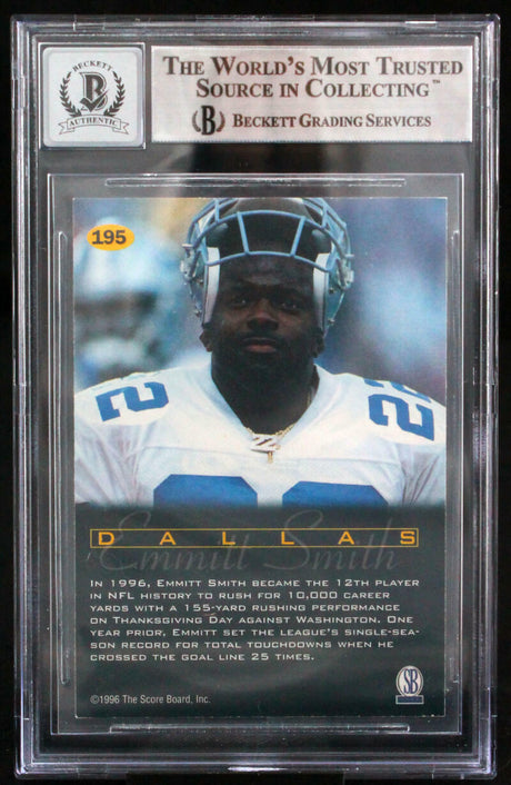 1996-97 Score Board All Sport PPF #195 Emmitt Smith Cowboys BGS Autograph 10