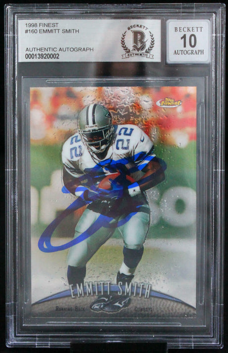 1998 Finest #160 Emmitt Smith Auto Dallas Cowboys BGS Autograph 10
