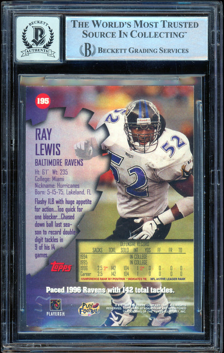 1997 Stadium Club #195 Ray Lewis Baltimore Ravens BGS Autograph 10