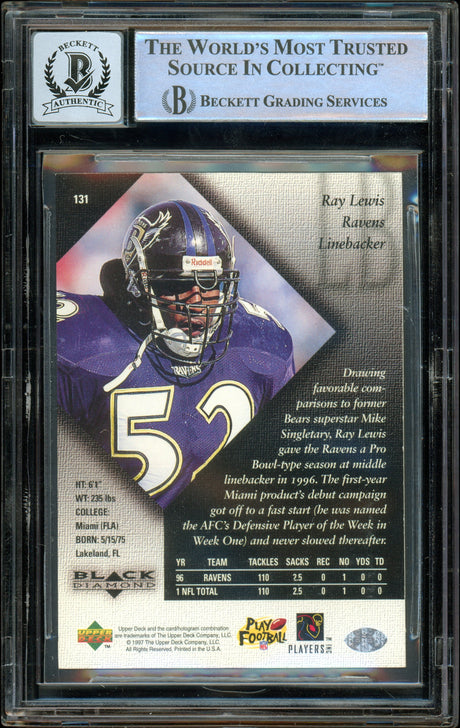 1997 Black Diamond #131 Ray Lewis Baltimore Ravens BGS Autograph 10