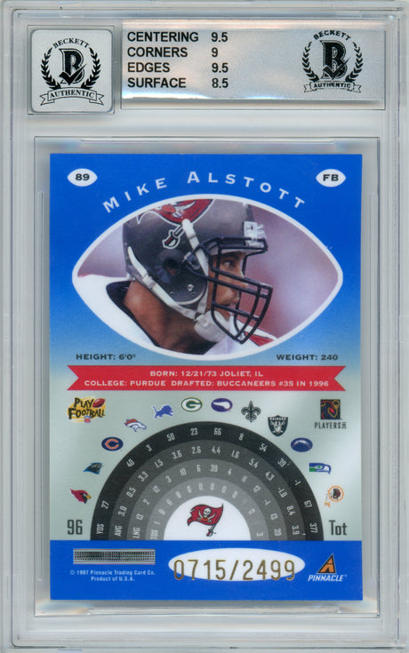 1997 Pinnacle Totally Certified Platinum Blue /2499 #89 Mike Alstott Bucs BGS 9 Auto 10