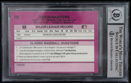 1989 Classic Travel Purple #200 Deion Sanders New York Yankees BGS Autograph 10