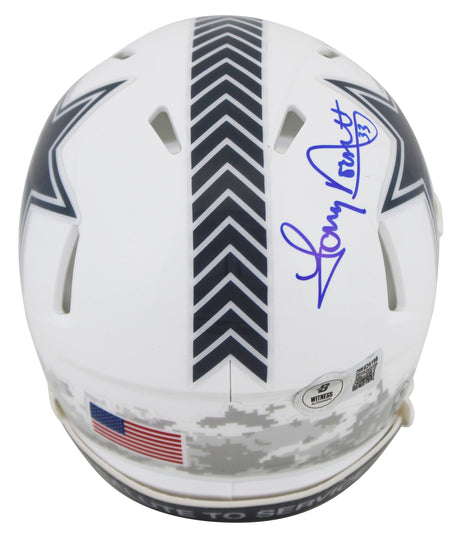 Cowboys Tony Dorsett Signed Salute To Service III Speed Mini Helmet BAS Witness