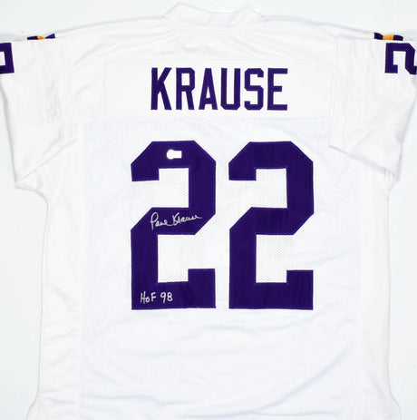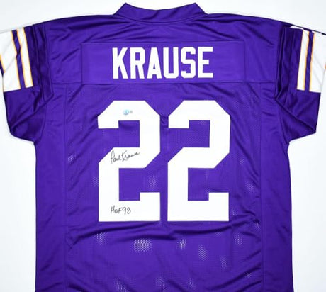 Paul Krause Autographed Purple Pro Style Jersey w/ HOF- Beckett W Hologram