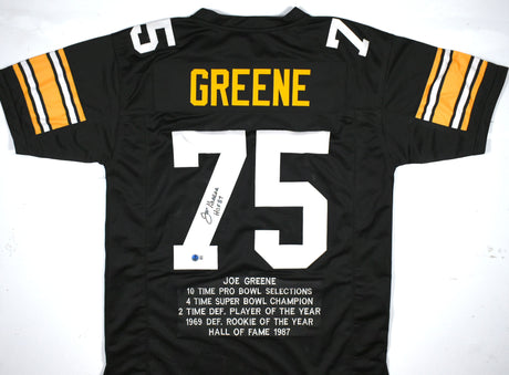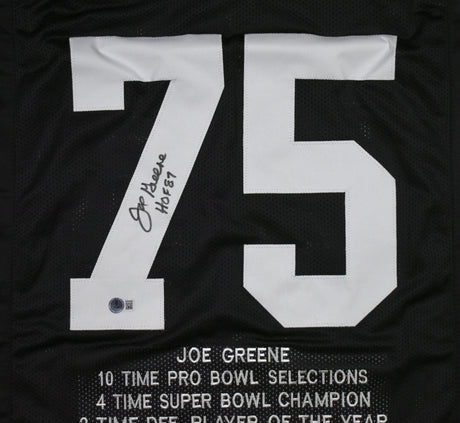 Joe Greene Autographed Black Pro Style STAT Jersey w/ HOF-Beckett W Hologram