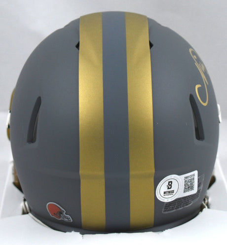 Nick Chubb Signed Cleveland Browns Slate Speed Mini Helmet - Beckett W Hologram
