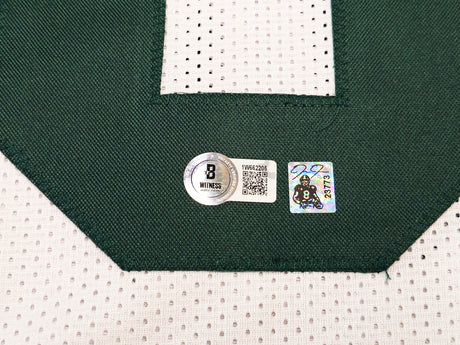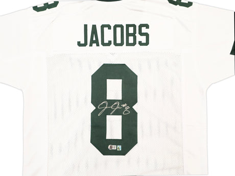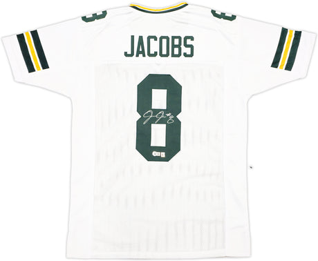 Green Bay Packers Josh Jacobs Autographed White Jersey Beckett BAS Witness Stock #229522