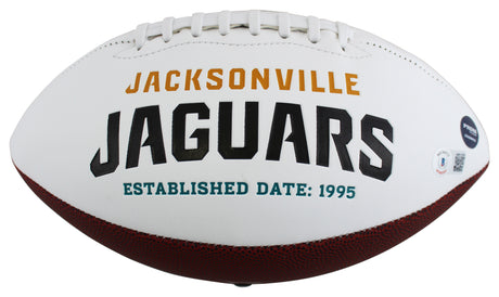 Jaguars Fred Taylor Signed White Panel Logo Football W/ Case BAS Witnessed