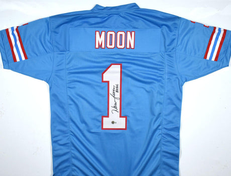Warren Moon Autographed Blue Pro Style Jersey w/ HOF - Beckett W Hologram *Black