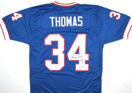 Thurman Thomas Autographed Blue Pro Style Jersey w/HOF - Beckett W Holo *Black