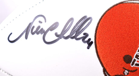 Nick Chubb Autographed Cleveland Browns Logo Football-Beckett W Holo*Black thick