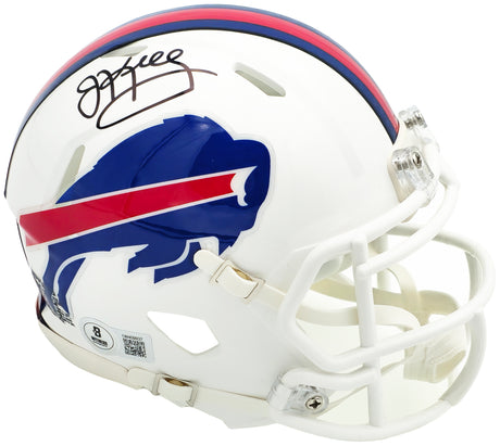 Jim Kelly Autographed Buffalo Bills White Speed Mini Helmet Beckett BAS Witness Stock #224820