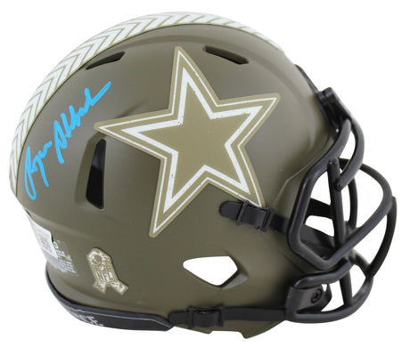 Cowboys Roger Staubach Signed Salute To Service Speed Mini Helmet BAS Witnessed