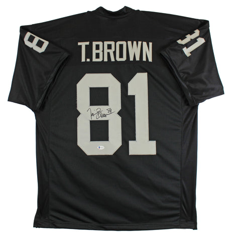 Tim Brown Authentic Signed Black Pro Style Jersey Autographed BAS Witnessed