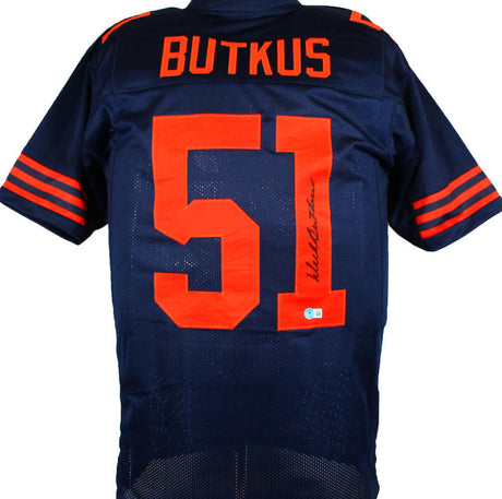 Dick Butkus Autographed Blue Pro Style Jersey w/Orange #- Beckett W Hologram