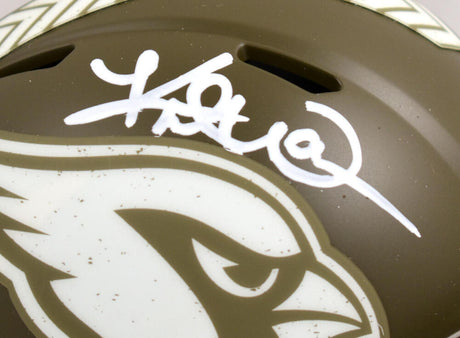 Kurt Warner Signed Cardinals Salute to Service Speed Mini Helmet-Beckett W Holo