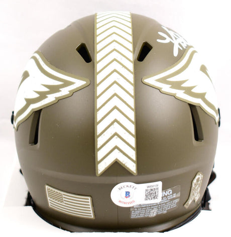 Brian Dawkins Autographed Eagles Salute to Service Speed Mini Helmet- Beckett