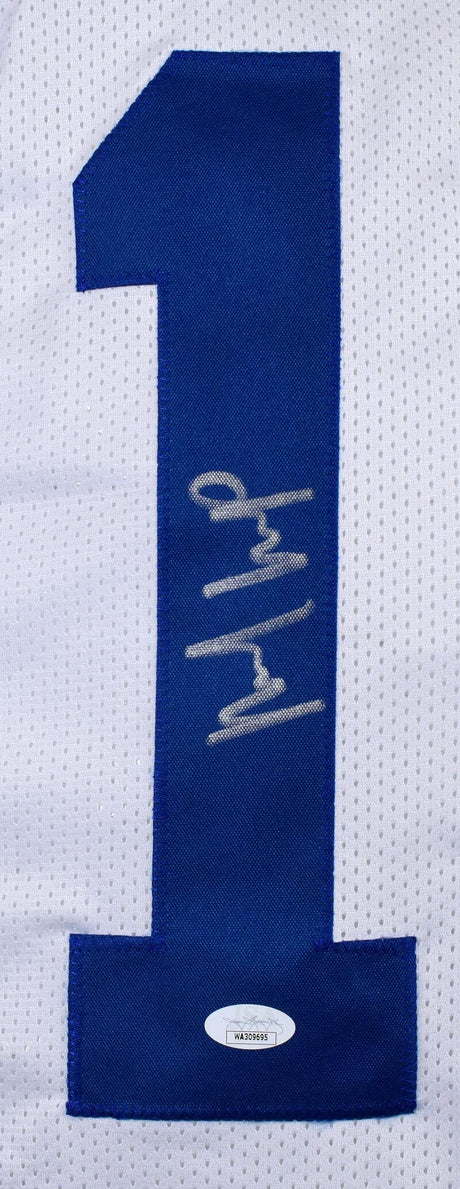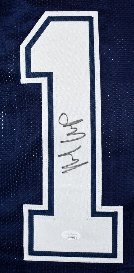 Elijah Moore Autographed Dark Blue College Style Jersey - Beckett W Hologram